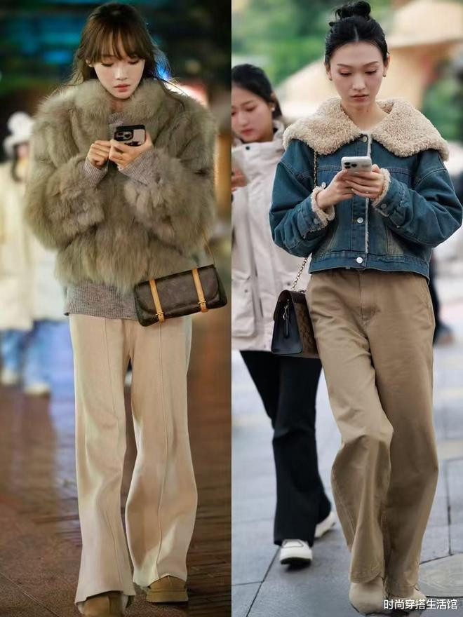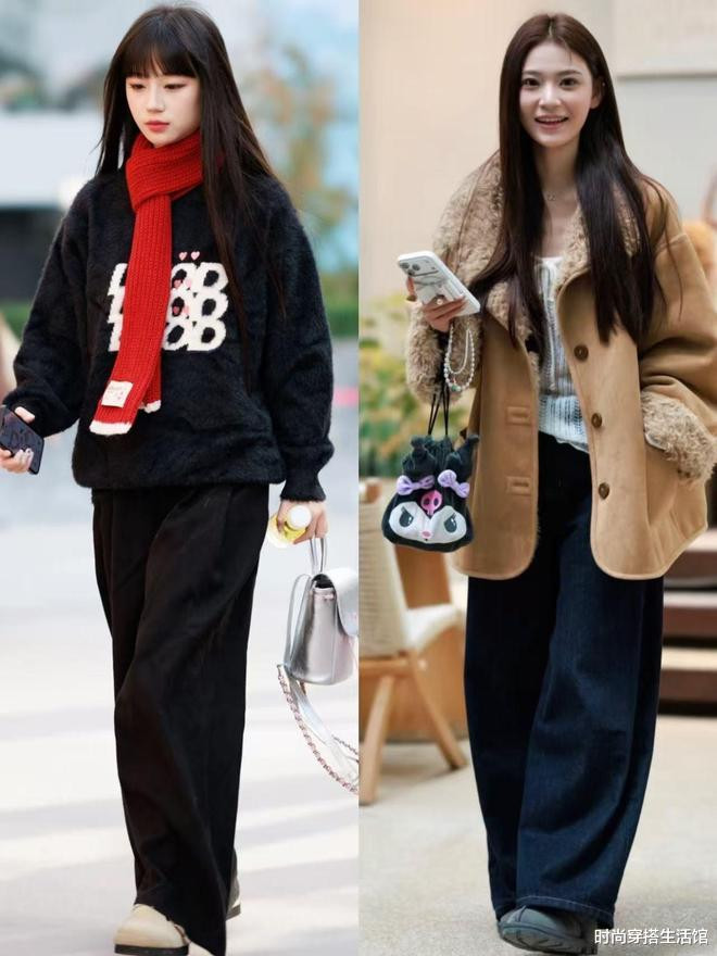 加绒雪尼尔宽腿裤,更是阔腿裤中的佼佼者,因为这种面料的阔腿裤不仅会更有垂感,而且摸上去质感也是非常不错的。随随便便穿上去就能给人一种腿型很笔直很纤细的感觉,而且用在秋冬的搭配里也会让整体的look更有质感。