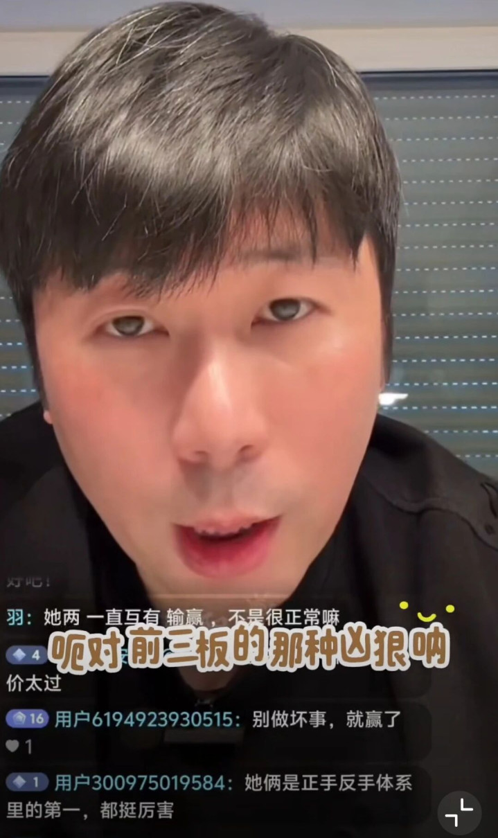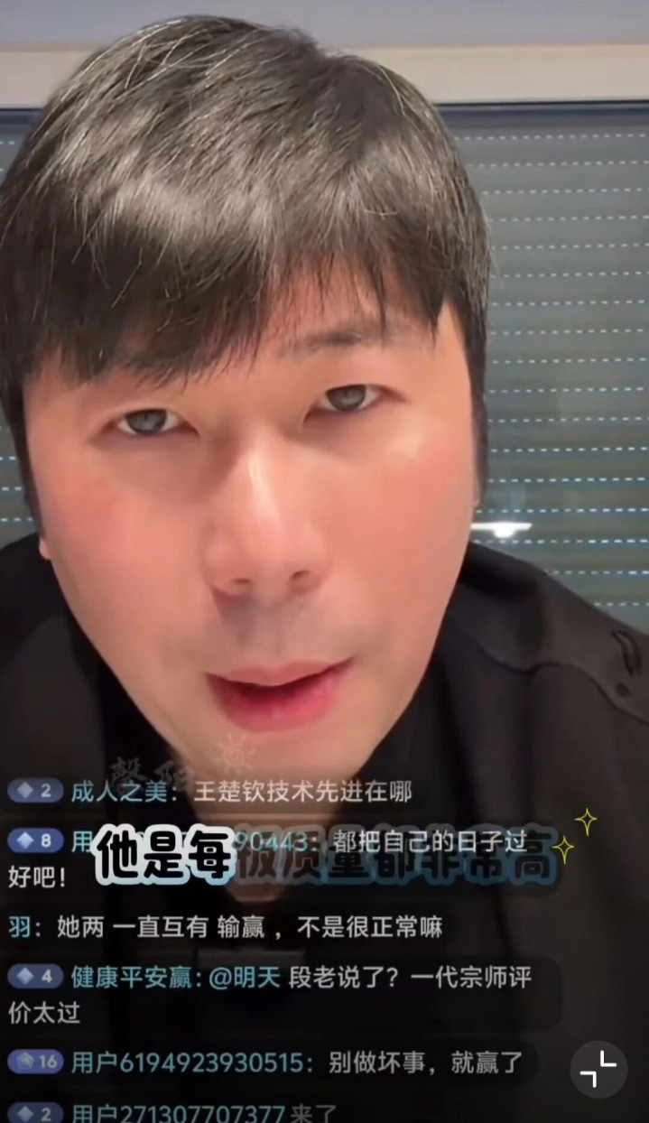 近日,德国华裔乒乓球选手韩莹的老公雷洋在摩托短视频平台直播的时候谈到了中国男乒头号主力王楚钦。