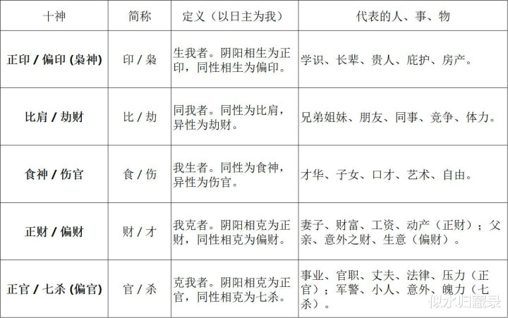 十神是八字将五行生克干系“东说念主格化”的中枢,其规定十足由 日主(我) 与其他干支的五行生克干系决定: