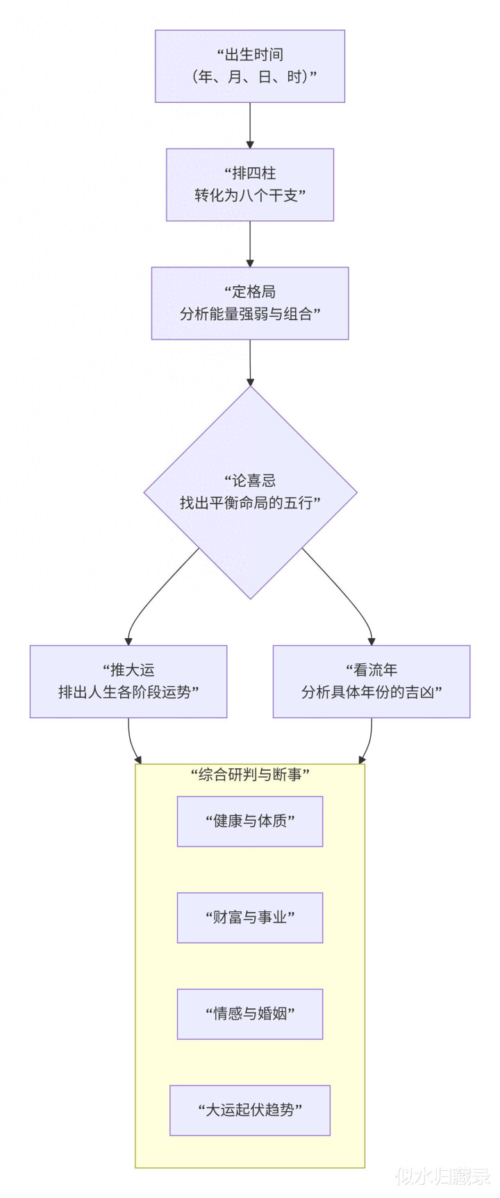 原局定根基:看八字格式上下、五行是否通顺、十神组合清浊。