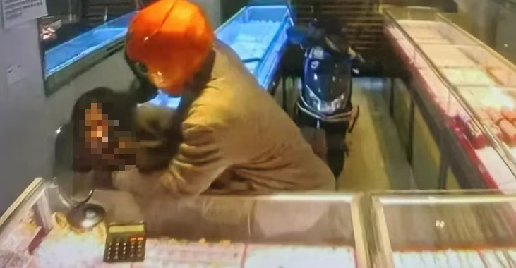 1月18日,福建平潭一首饰店被抢劫,嫌疑人手持电棒电击店主。监控画面显示,店面卷帘门正在关闭时,戴头盔的嫌疑人从门缝钻入,殴打、电击店主,砸坏货品柜取走财物。