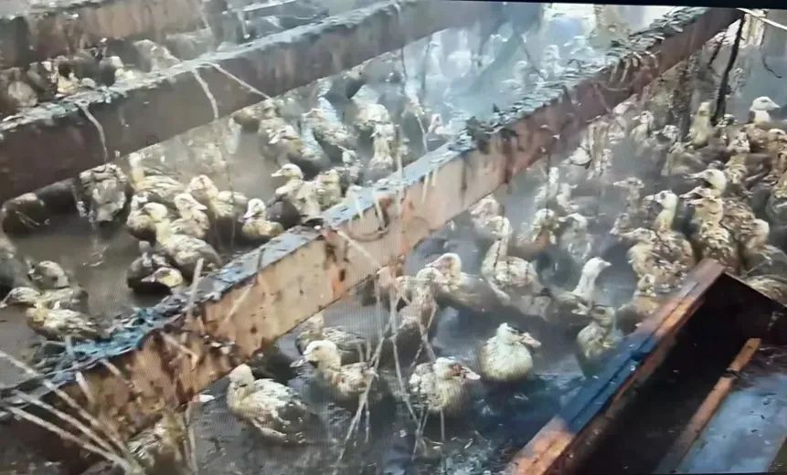 “事发时我并不在场,多亏邻居先帮忙把门开了一道缝。等我赶回来将门完全打开,这才保住了大部分鸭子。养了43年鸭,这样的阵仗我还是头一遭见,真的是太触目惊心了!”