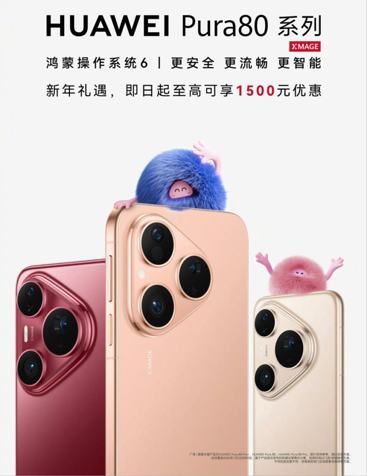 华为 Pura80 系列新年礼遇现已开启,即日起至高可享 1500 元优惠!