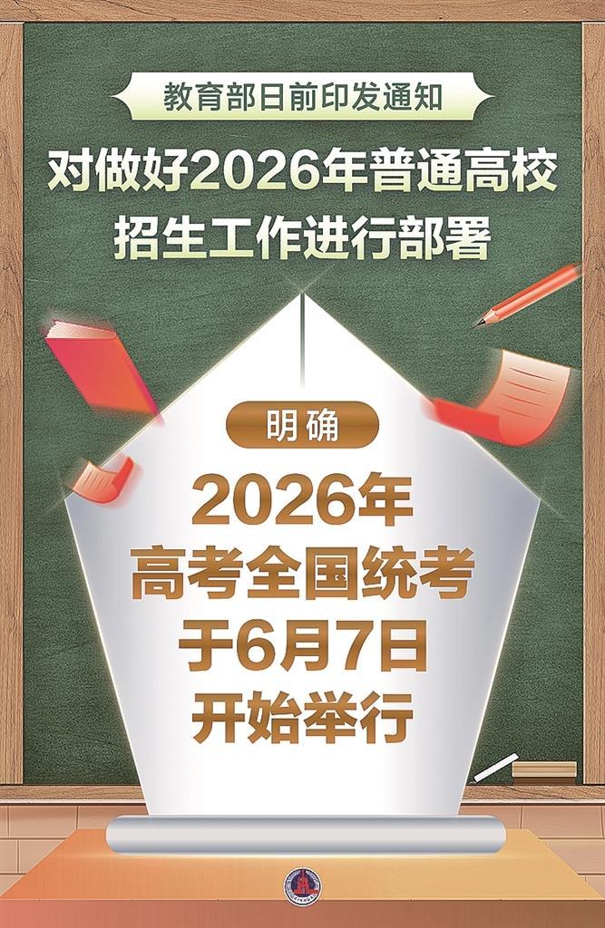 日前,教育部印发通知,对做好2026年普通高校招生工作进行部署,要求坚持稳中求进工作总基调,更好统筹发展和安全,进一步加强改革创新,严格规范管理,推动考试招生事业高质量发展。