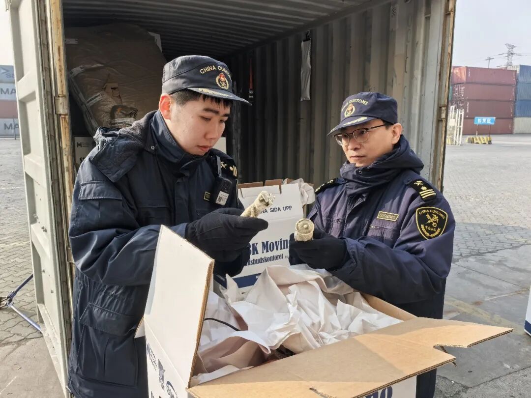 近日,天津新港海关在进境分运行李渠道查获象牙制品。