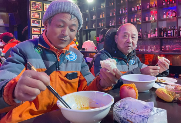 康为民(左)吃了7年爱心早餐。