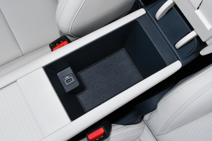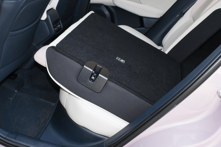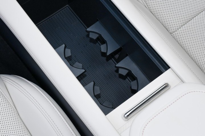 储物空间的设计处处体现巧思,全车共有36处储物空间,日常随身小物件都能找到合适的安放位置。主副驾的无边框柔光遮阳板,既能挡住紫外线,又不会像传统遮阳板那样遮挡视野,实用性很强。副驾有隐藏式外卖挂钩,买了咖啡、奶茶放在上面,能有效防止洒漏,对于经常点外卖的上班族来说特别贴心。后排有两个小挂钩,能挂帽子、西装等物品,避免衣物起皱。折叠式杯架折叠后,还能放下中号小包,灵活性很高。手套箱容积8L,中央扶手箱更是达到9.4L,能装下不少东西。