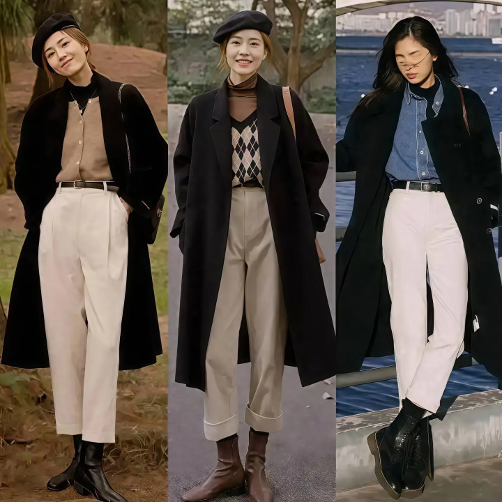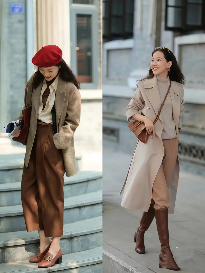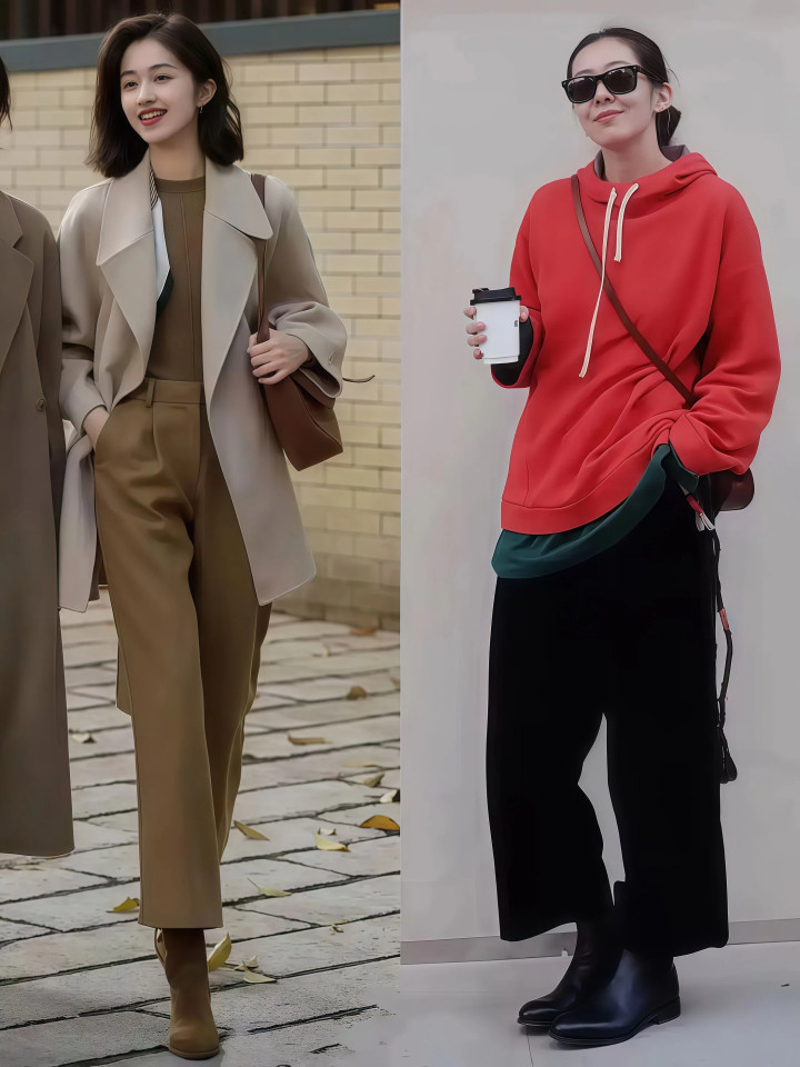 你有没有发现,有些人明明个子不高,穿出来却显得腿特别长?秘密就在腰线的塑造上,大衣里面如果穿一件短款毛衣或者短款针织衫,再配上高腰的九分裤,你的上半身就只占整体身高的三成,剩下的七成全是腿,这个比例一出来,人不可能不好看。