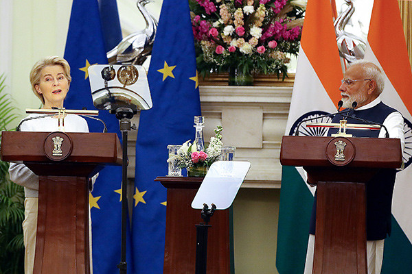 2025年2月28日,莫迪与冯德莱恩举行联合记者会,冯德莱恩当时表示将努力在年内达成自由贸易协议。ICPhoto