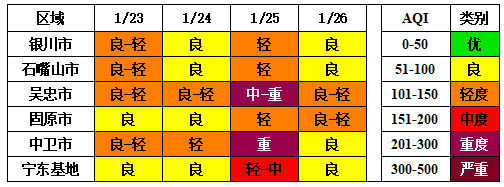 2026年1月23日-26日全区环境空气质量预报刷色表