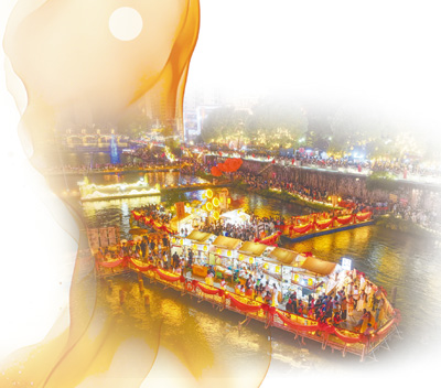 市民游客在宣恩县水上市集游玩。